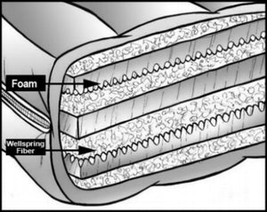 The heart of the approximately 8" Supreme is a 2" core of Certipur Foam surrounded by Wellspring fiber batting. Two extra pieces of 2.5" convoluted Ceripur foam wrapped in Wellspring fiber. The Supreme is environmentally friendly, durable and very comfortable. Our exclusive Wellspring fiber is a revolutionary material that utilizes the second use of plastics. It's a virgin fiber that is generated from recycled polyethylene, familiar to you as two-liter beverage containers. It's clean, odor free, and very resilient. The fibers look and feel incredibly like cotton; fluffy,